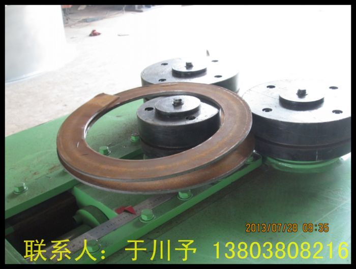 該機適合卷制各種小口徑法蘭,可以一次連續(xù)成型成彈簧狀,適合于加工電機擋圈法蘭,管道法蘭等。